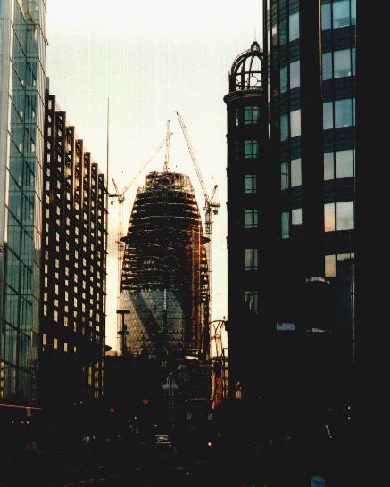 Some photos (taken Nov 2002) of Norman Foster's 41 storey "Erotic Gherkin", which will be occupied by Insurance company Swiss Re (when it's finally complete - which it still isn't as of June 2003 - nearly, though).